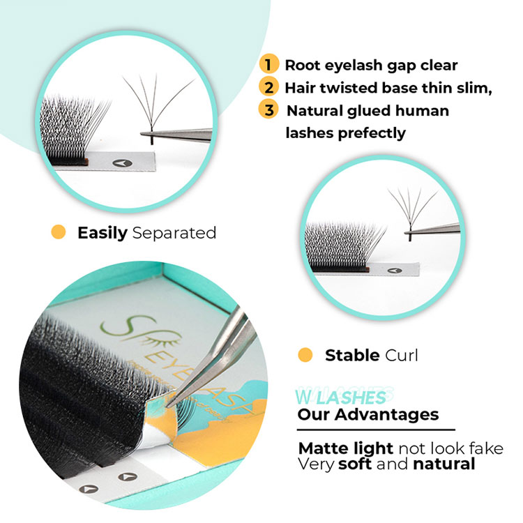 অনন্য ডিজাইন: 7 টি ল্যাশ এক্সটেনশনগুলি শিকড়ের সাথে একত্রে বন্ধন করা হয়, যা টুইজার দিয়ে ফ্যান তৈরি করা খুব সহজ করে তোলে। SP EYELASH-এর 7D W Lash এক্সটেনশনগুলির সাথে সাথে সাথে একটি 7D লম্বা স্টেম ক্লাস্টার তৈরি করুন।