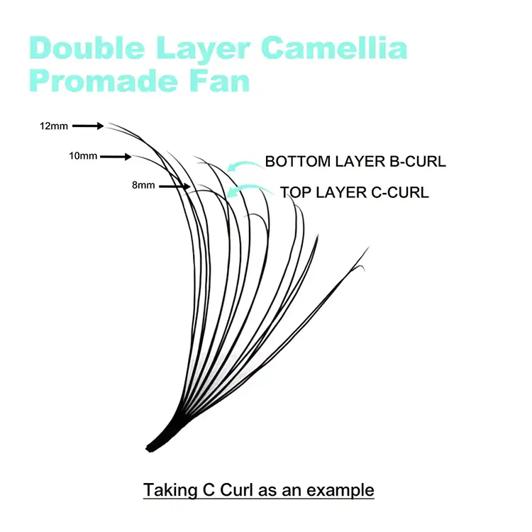 8 ডি ডাবল ক্যামেলিয়া প্রাইডে ফ্যান ল্যাশগুলি দক্ষিণ কোরিয়া থেকে আমদানি করা পিবিটি সিন্থেটিক চুল ব্যবহার করে যা হালকা ওজনের, নরম এবং একটি প্রাকৃতিক দীপ্তি রয়েছে। Traditional তিহ্যবাহী সিন্থেটিক উলের সাথে তুলনা করে, পিবিটি উপাদান ওজনকে প্রায় 30% হ্রাস করে এবং সূক্ষ্ম টিপস রয়েছে। ক্যামেলিয়া প্রাইমাদ ভক্তরা সমস্ত হস্তনির্মিত, পাতলা এবং এমনকি শিকড় এবং প্রতিসম ফুলের ব্যবস্থা সহ।