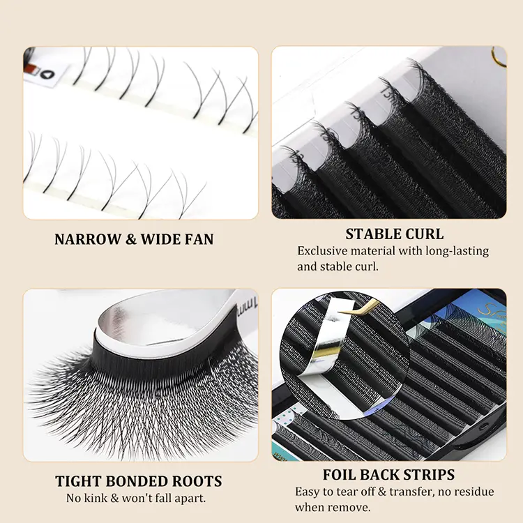 টেকসই এবং দৃ firm ়: একক আইল্যাশগুলির সাথে তুলনা করে, ডাব্লু-আকৃতির প্রাক ফুল ফোটানো আইল্যাশগুলির দীর্ঘ স্টেম ডিজাইনটি প্রাকৃতিক আইল্যাশগুলির সাথে যোগাযোগের ক্ষেত্রটি বাড়িয়ে তুলতে পারে, আরও শক্তিশালী আঠালো এবং স্থায়িত্ব সরবরাহ করে।