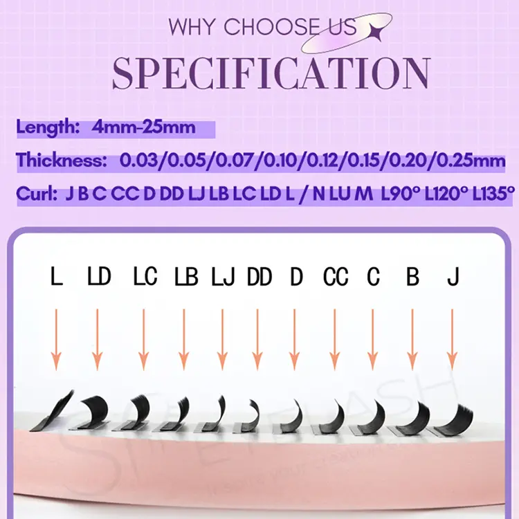 এসপি আইল্যাশ ল্যাশ এক্সটেনশন সরবরাহগুলি জে, বি, সি, সিসি, ডি, এল, এবং এম সহ বিভিন্ন কার্ল বিকল্প সরবরাহ করে যা বিভিন্ন চোখের আকার এবং কাঙ্ক্ষিত মেকআপ প্রভাবগুলির জন্য উপযুক্ত। সূক্ষ্ম এবং প্রাকৃতিক কার্ল থেকে শুরু করে নাটকীয় এবং মনোমুগ্ধকর কার্ল পর্যন্ত সমস্ত কিছু পাওয়া যায়।