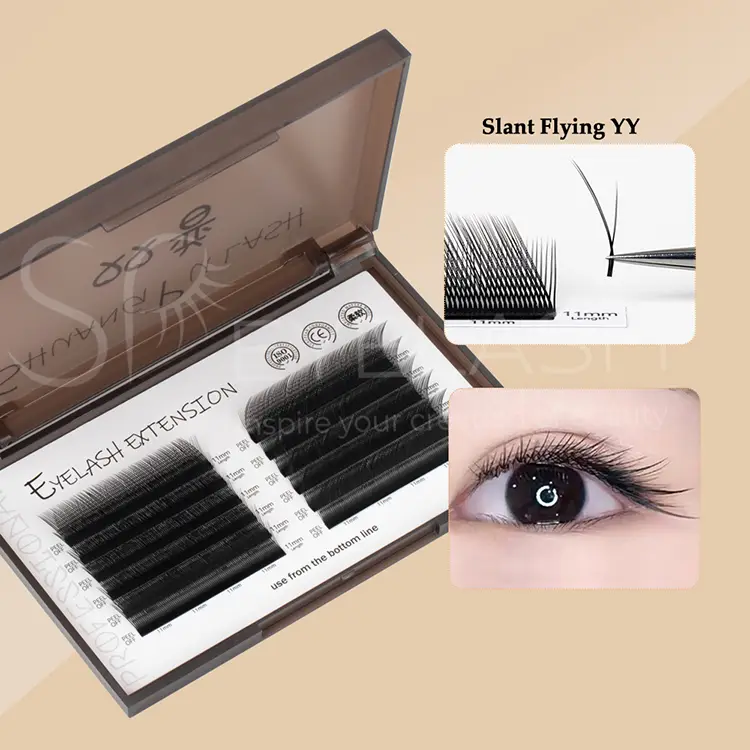 এসপি আইল্যাশ স্লেন্ট ফ্লাই ওয়াই শেপ ল্যাশগুলির একটি অনন্য op ালু ফ্লাই ওয়াইওয়াই কাঠামো রয়েছে, যা স্বাভাবিকভাবেই 3 টি দীর্ঘ এবং 2 সংক্ষিপ্ত (একক দৈর্ঘ্য 9-14 মিমি al চ্ছিক) সহ একটি বুদ্ধিমান 5-পয়েন্ট ডিজাইনের মাধ্যমে চোখের লেজের উপর ward র্ধ্বমুখী প্রভাব তৈরি করে। ক্রস বুনন কৌশল লেয়ারিংয়ের অনুভূতি তৈরি করে, প্রাকৃতিক চোখের দোররাগুলির মধ্যে ফাঁকগুলি পূরণ করে এবং একটি নগ্ন মেকআপ প্রভাব অর্জন করে।